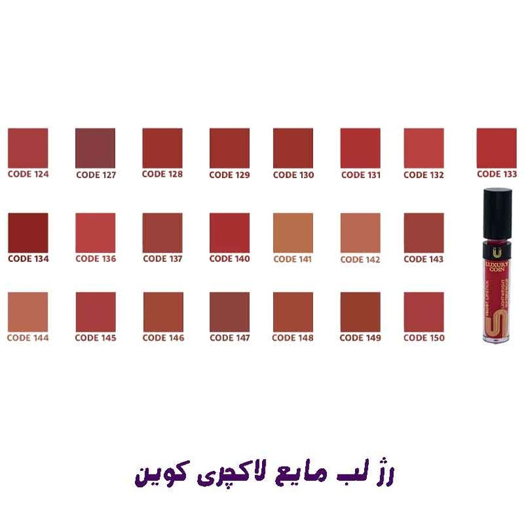 🎨 رنگبندی رژ لب مایع لاکچری کوین (۱۲۴ تا ۱۵۰):